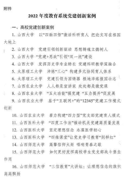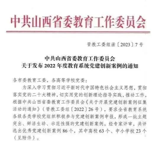 近日,中共山西省委教育工作委员会公布了2022年度全省教育系统党建创新案例评选结果。皇冠体育