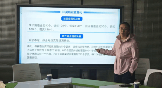 评审专家“如何评审职业生涯规划书和简历”进行了培训;王丹阳老师对大赛文件进行了解读;云研公司王沛东对大赛平台操作进行了培训。