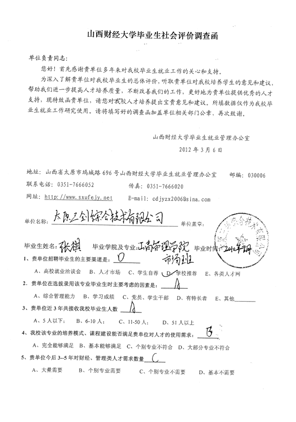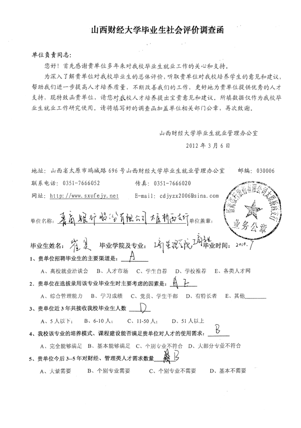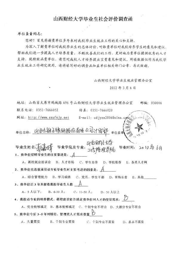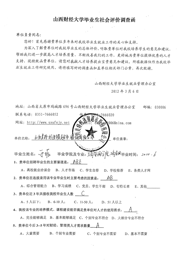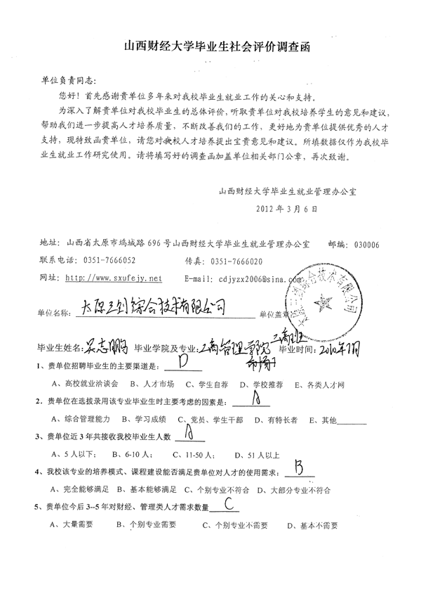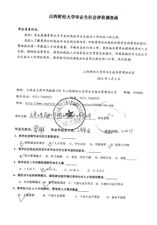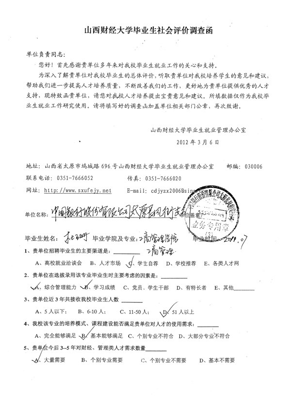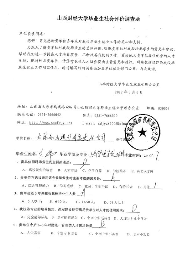 皇冠体育 工商管理专业毕业生社会评价佐证材料汇总