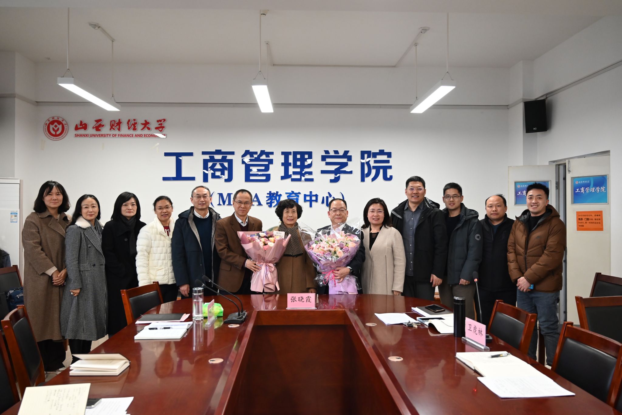 最后,管理原理教研室、院工会为张老师敬赠鲜花和纪念品,并合影留念。