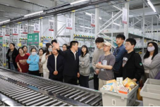 参访师生首先来到了山西顺天立大健康产业集团旗下万美医药科技有限公司智慧仓库进行参观,企业代表向老师与学生们展示并讲解了智能仓储系统、自动化分拣设备以及物联网技术在物流管理中的应用。在参观过程中,企业代表介绍了货物验收、仓储及分拣作业流程,带领团队参观冷库、设备充电间、螺旋提升机、叠箱机、复核台等基础设施,并详细讲解其作业原理,同时指出企业发展旨在“低成本运营、高效率配送、高标准服务、高质量发展”。