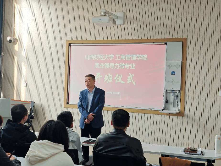在2021年就签订了人才培养基地合作协议。在过去的三年合作中,实现了双向赋能共同发展。在下一个三年,双方的合作将更广阔更深入。此次微专业开班不仅为经建投员工提供了充电学习的机会,也为财大学子拓宽了实践平台。他简要介绍了经建投的发展历程、公司规模及四大业务板块,并作为学长向同学们提出由衷建议。他强调,商业领导力专业课程与现代商业经济紧密相连,一对一的实践指导也会让大家获益匪浅,希望大家抓住每一次学习机会,相互学习,共同进步。同时,他热情欢迎同学们毕业后加入经建投。
