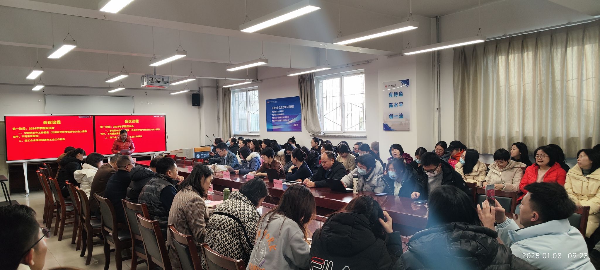 双代会。院工会主席闫向连作工会工作报告。