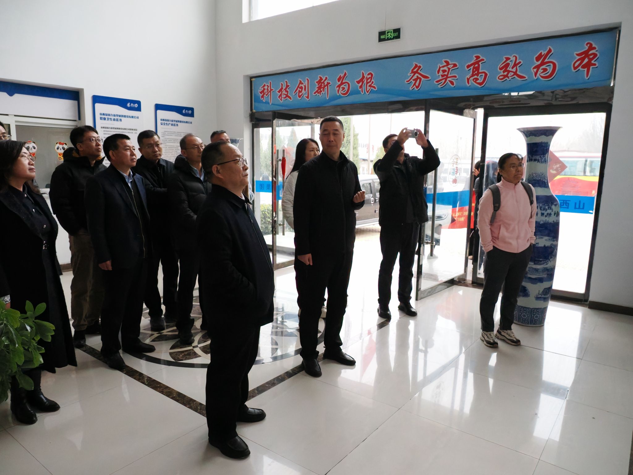 一行参观了公司的文化墙和生产车间,了解了凝固力的发展历程、核心优势、经营管理及未来规划,感受了企业二十年来专注新材料细分赛道、深耕细作,通过科技创新实现公司成为国内头部企业的定力与坚持。