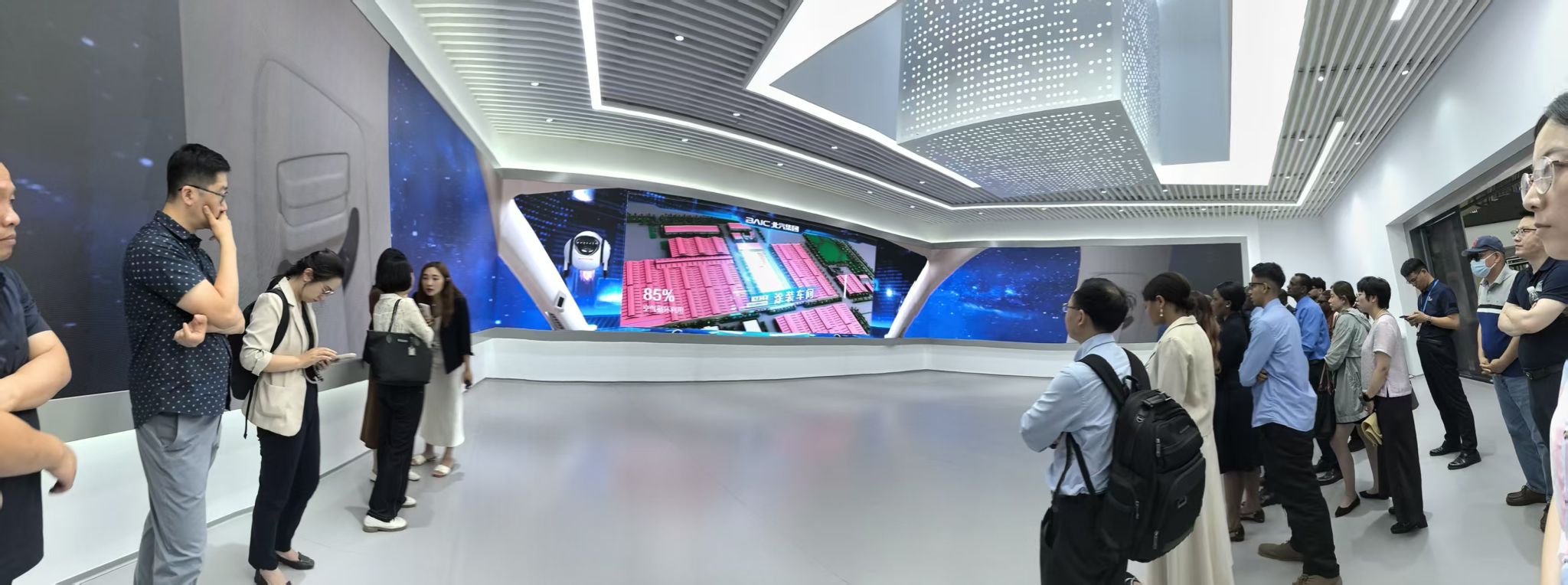 6月17日上午,会议议程为企业国际化案例参访,参会代表前往北汽新能源享界超级工厂开展实地调研。活动内容包括智慧展厅参观、核心车间巡览与展车现场体验,系统了解北汽在数字化制造与绿色出行方面的技术路径。座谈环节中,北汽国际发展公司负责人详细介绍了其面向海外市场的混动核心技术解决方案,涵盖智能决策、防震防刮、电池安全与热管理系统等关键优势。此次调研进一步加深了参会教师对中国新能源车企“出海”战略与技术模式的理解。