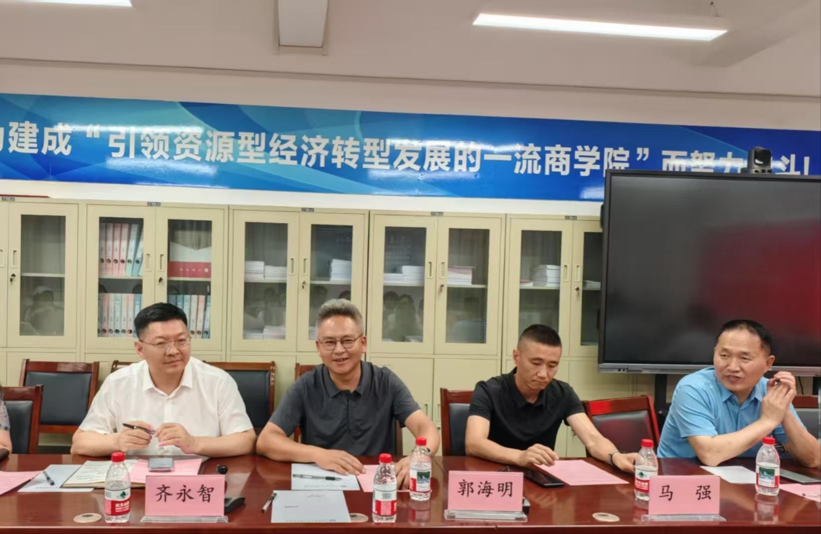 的美好祝愿。山西智胜传媒科技股份有限公司董事长郭海明以独特的文化视角,深入剖析“卓越”二字的内涵,指出了人生道路上选择的重要性,并鼓励同学们相信自己,热爱自己选择的道路。山西水木年华网络科技有限公司创始人刘强讲述了自己的职业经历和创业历程,分享了自己选择人力资源服务行业的原因和创办幸福企业的核心价值观,以亲身经历激励同学们找到适合自己的事业,并在长期坚持中发掘自己的潜力。山西体姆体育发展有限公司总经理马强分享了自己在马拉松和沙漠徒步赛事中挑战极限、突破自我的热血经历,强调了自律、坚持、挑战自我、团队精神的重要性,鼓励同学们不断超越自我,迈向卓越。