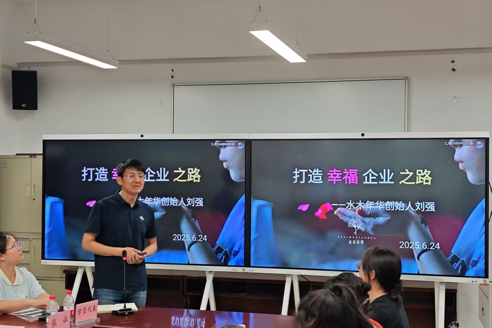 开班仪式后,进入主题分享环节。四位主讲嘉宾结合自己的人生经验和商场感悟分享了对管理学卓越人才培养与成长的理解。
