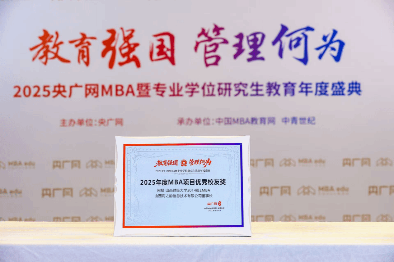 2014级EMBA、山西海之韵信息技术有限公司董事长闫斌荣获“2025年度MBA项目优秀校友奖”。