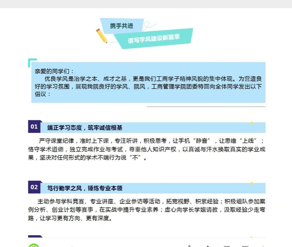 微信公众号上向全院师生发出《携手共进,谱写学风建设新篇章》的倡议书。