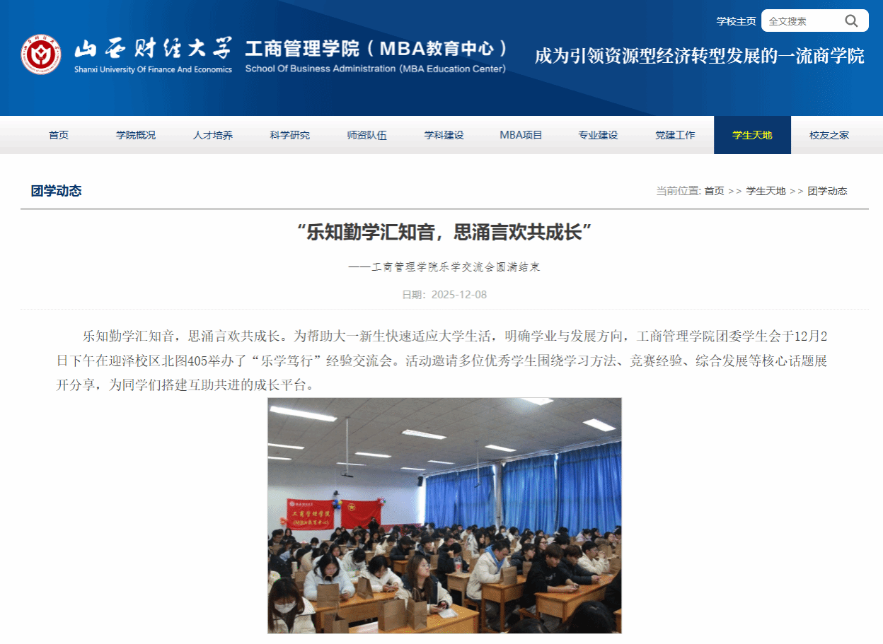 团委学生会于12月2日举办了“乐学笃行”经验交流会。邀请多位优秀学生分享学习方法、竞赛经验等,为同学们搭建了互助共进的成长平台。此外,皇冠体育