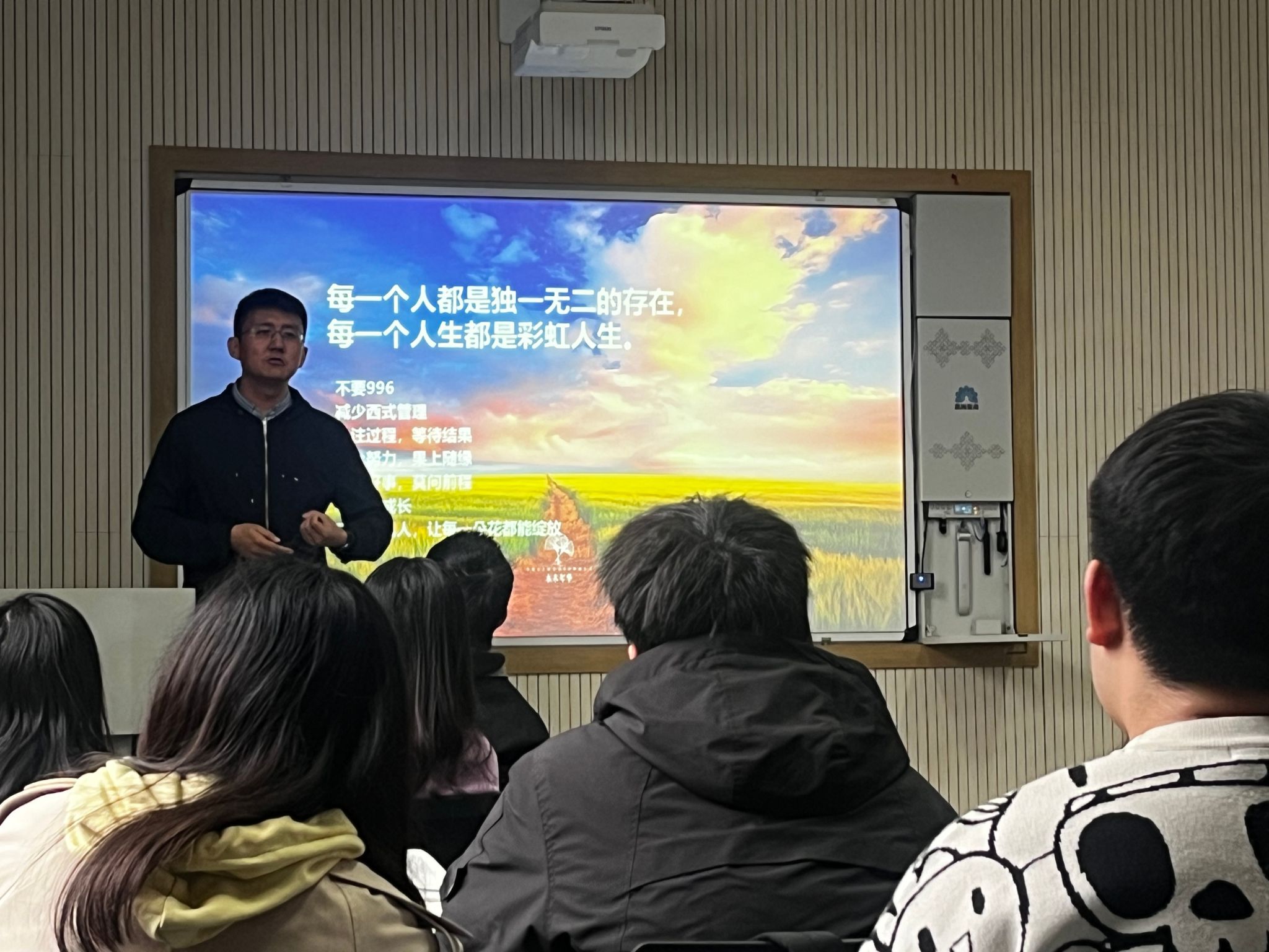 刘强从自己的人生经历讲起,担任国企、民企高管,为追寻自己内心的方向,辞职创业。他分享了辞职后骑行西藏60天的真实经历,一路与来自五湖四海的骑友同行,目光所及,皆是美景,感受到前所未有的内心宁静,心如湖水,明净、澄亮,骑行路上更坚定了创业的方向。他讲述了水木年华公司是如何诞生的,“一间房、一个人、一把椅,从早想到晚,我们公司是要做什么?究竟提供什么服务?为谁服务?想明白之后‘一生有你’就成为水木年华的底层思维方式。”并且详细介绍了水木年华的创业初心、经营现状、管理制度、皇冠官网以及未来的战略规划。秉持“要做一个对社会有价值的企业,让有贡献者必有回报,企业盈利和快乐工作都要”的经营理念,不要996、减少西式管理......以胖东来为榜样,吸引志同道合的人,用行动来创造幸福的工作环境,打造“幸福”的皇冠官网。最后,他衷心祝愿同学们“要勇敢的活在当下”,毕竟“每个人都是独一无二的存在”。