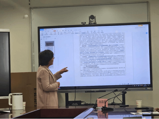 刘美琳老师与樊贵莲老师分别分享了各自的课题申报书,就写作过程中的困惑、问题与大家进行交流。孙国强教授就课题标题的表述、研究背景的写作、研究思路的梳理、经费预算的设计等为两位老师的申报书提出了宝贵的修改意见。