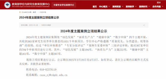 3月28日,教育部学位与研究生教育发展中心公示了2024年度主题案例立项名单,皇冠体育