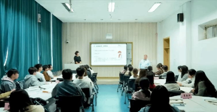 校外导师、山西景柏服饰股份有限公司董事长樊晋慧先生走进2023级人力资源管理二班《人力资源管理综合实训》课堂,开展了一场别具特色的产教融合现场教学活动。课程教学团队闫向连、谭道伦和王丹阳三位教师参与了本次课堂讨论。
