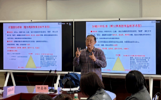 教师围绕各自的研究选题向钟教授请教交流,钟教授结合自身研究积淀与评审经验,对每个问题进行细致回应。
