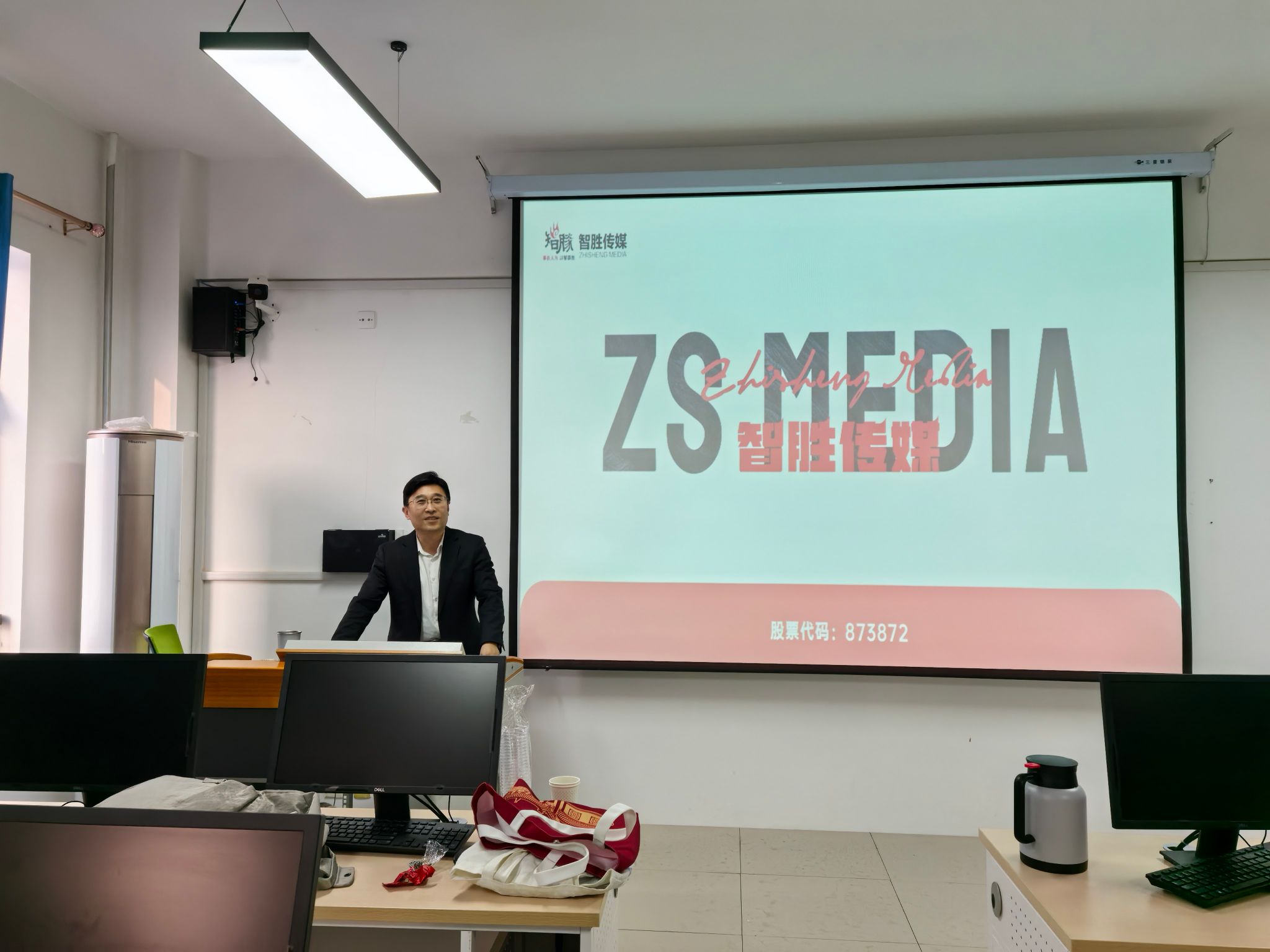 2023级人力资源管理一班《人力资源管理综合实验》课堂迎来了一场别开生面的专题讲座。课程特邀山西智胜传媒科技股份有限公司(简称智胜传媒)许初裕副总经理走进校园,与同学们进行了深入的分享与交流。