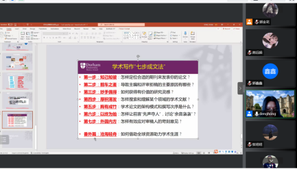 邓红老师围绕研究生期间英语学习、科研提升和职业规划等方面展开。首先,邓老师结合自己的求学经历分享了研究生英文学习经验。听:泛听TED各领域演进,精听知名学者演讲;说:看和模仿脱口秀、美剧等;读:读英文顶刊论文和商业实践类文章;写:积累经典词句,琢磨大牛写作技巧。其次,邓老师围绕研究生期间“如何确定感兴趣的科研方向和选题?如何发现研究问题?如何提升论文写作水平?科研进度时间点如何安排?”等重要问题进行了分享。最后,邓老师总结了“学术写作七步成文法”,即第一步,知己知彼;第二步,前车之鉴;第三步,妙手偶得;第四步,厚积薄发;第五步,胸有成竹;第六步,以终为始;第七步,外圆内方。本次讲座极大地激发了皇冠体育