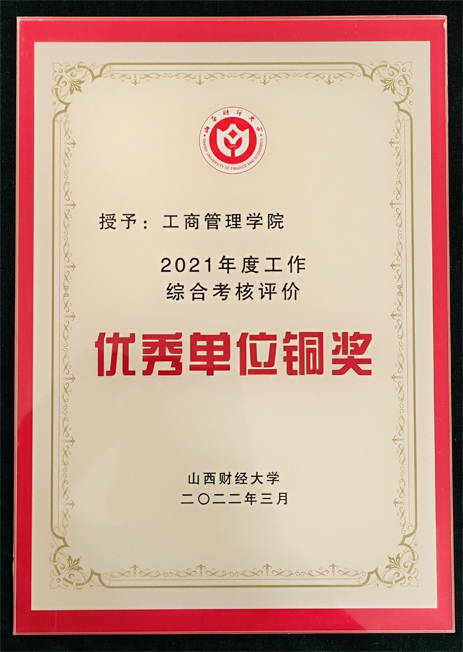 2021年度工作综合考核评价优秀单位铜奖