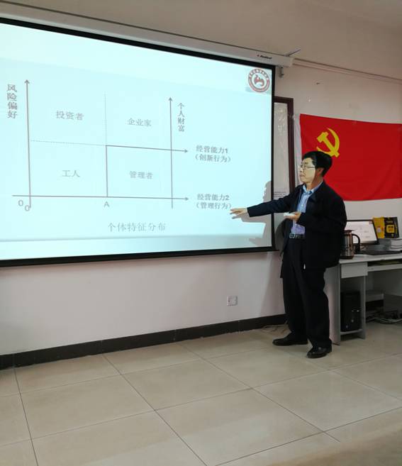 师生作了题为“企业家创新的偏好基础”的专题讲座。这一主题也是高教授不久前主持承担的“阐释党的十九大精神” 国家社科基金重大专项的最新研究成果。高教授从哪些人更可能成为企业家——“穷光蛋”还是“富二代”这一引人深思的问题入手,阐释了他对于这一问题的独特见解。接下来,就企业家对风险的认知、企业家如何应对不确定性、风险偏好与创新行为之间的关系等问题展开了深入浅出的论述。最后,高闯教授向与会师生抛出“企业家是先天遗传还是后天养成”这一话题,供大家思考。最后,高闯教授与大家分享了自己喜欢的名言警句,鼓励师生找到对的方向、对的路,努力前行。高闯教授风趣幽默的表达、深入浅出的讲解,给广大师生留下了深刻印象。(席燕平 供稿)