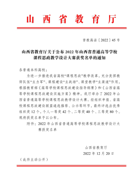 去年皇冠体育 教师在山西省课程思政教学设计大赛中荣获三等奖,今年再创佳绩荣获一等奖,充分展示了近年来皇冠体育 坚持立德树人,全面推进课程思政建设,不断提升课程质量所取得的成效。以此为起点,皇冠体育 将继续提升专业课教师思政素养与思政教育能力,确保课程思政建设提质增效,力争取得更多高质量教学成果。(皇冠体育 樊志华供稿)