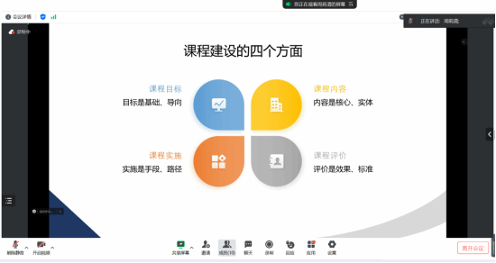 会上,郑玉飞教授围绕本次会议主题并结合自身教学经验,从课程创新、教学创新、创设环境、持续改革四个方面进行了课程与教学创新改革内容的全面分享。其中,课程创新部分重点介绍了课程目标的规范与创新、课程内容的选择与创新、课程实施的创新与阻力以及课程评价的创新;教学创新部分从理念、目标、方法三维度提出了教学创新的具体思路;创设环境部分基于教学管理、学生学习、教师教学等多重视角介绍了教学硬环境与软环境的创设策略;最后强调了持续改革对课程与教学创新的重要性。