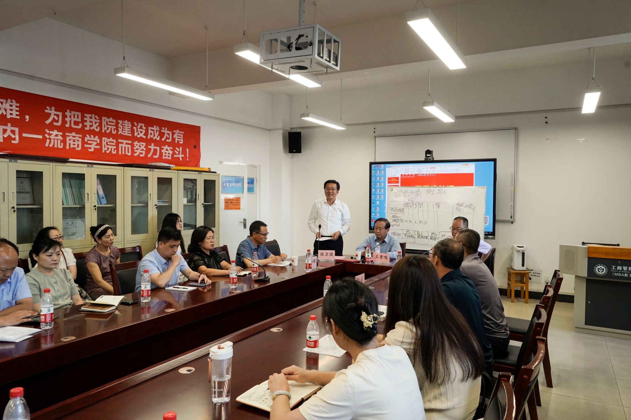 领导班子全体成员、各教研室主任、国际认证团队成员、近五年新入职博士、MBA教育中心所有工作人员等50余人参加会议。会议由皇冠体育