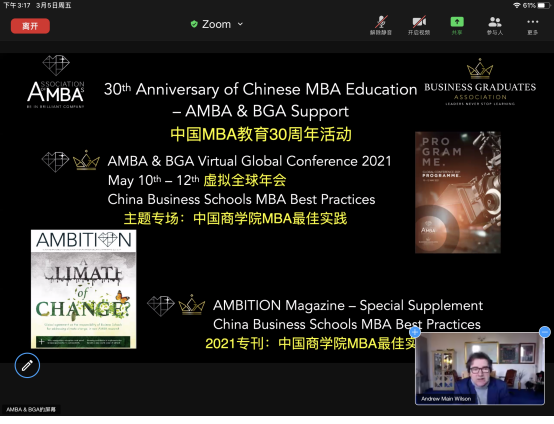 3月5日下午,英国国际认证协会举办第10次中国AMBA&BGA院校能力建设新学期云论坛,作为2021年第一次在线研讨与能力建设会议,主题是“最佳实践与持续影响力战略”。来自全球AMBA&BGA成员院校的管理皇冠体育