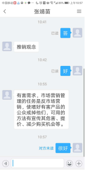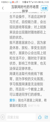课堂采取观看教学视频、学习PPT、阅读相关资料、课堂互动、讨论、随堂测验、课后作业多种方式相结合,整体课堂教学比较顺利。学生抢答问题相当积极,基本上全班五分之四的同学参与了抢答,因为时间有限,还有部分同学没有机会回答。在讨论过程中,由于背景材料是疫情下远程办公、远程教育问题,与每一位学生息息相关,他们都是参与者,学生发言相当踊跃,部分同学多次参与,不断回复,我必须快速浏览学生观点并做出响应,对高质量发言通过点赞给学生加分。对于一些学生的疑惑,均给予了及时回复,并通过追问加深学生的理解。同时还要对部分好观点进行手机截屏,发微信群供大家学习。通过讨论,帮助同学们提高了运用营销理论分析解决实际问题的能力。最后十分钟对讨论互动过程进行了归类总结,对本次课程需要掌握的知识点及其应用做了再次强调。