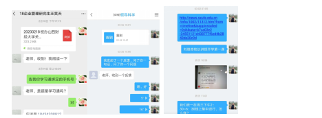 5、线上教学试运行,测试效果,完善修正方案:提前一周于2月26日,进行了线上教学测试,决定采用“微信+学习通+腾讯会议直播与屏幕共享”方式。 6、发送上课通知:微信和学习通班级群双渠道发送会议邀请 |