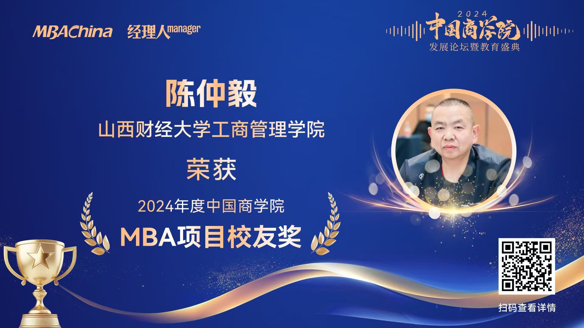 皇冠体育 EMBA校友陈仲毅荣获 “2024年度中国商皇冠体育 MBA项目优秀校友奖”
