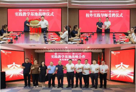 与集团董事长胡瑾瑜签订实践基地协议并授牌,同时向获聘本科生校外实践导师的企业代表颁发证书。